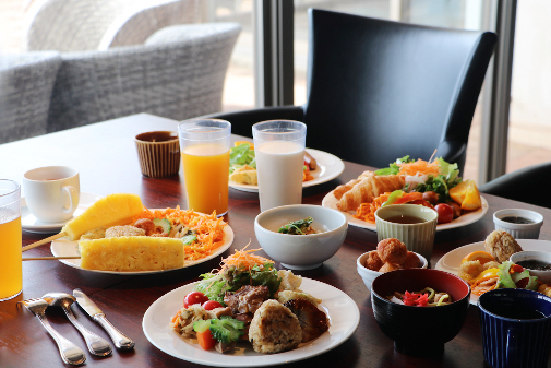 ホテルから見える石垣島らしい青い空と海を写真に撮りたくなります。「空7:海3」「空4:海6」の割合が構図的には最適だそうです。太陽の日差しまぶしい海や、水平線に沈むサンセットのロケーション。窓越しに見える竹富島などの離島の島々。魅力的な景色をお約束いたします。