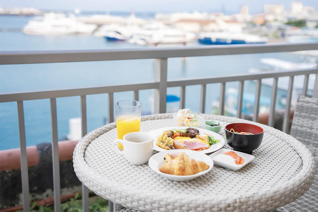 島料理から和食、洋食を取り揃えたビュッフェスタイルの朝食です。
